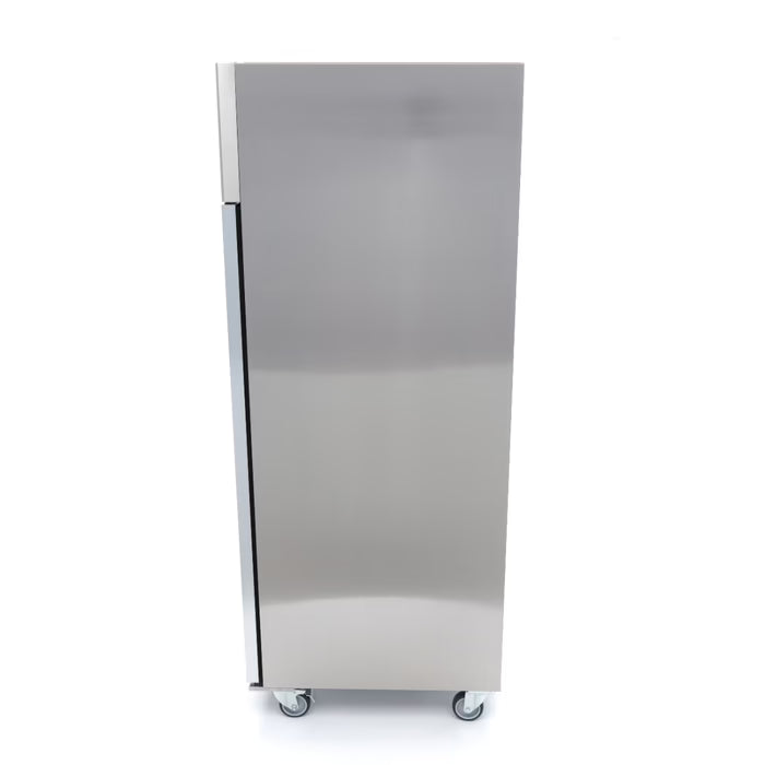 Detta kylskåp i rostfritt stål, med en bruttokapacitet på 1200 liter, erbjuder förbättrade kylmöjligheter för din cateringverksamhet. Interiören har energieffektiv LED-belysning och sex höjdjusterbara hyllor som är lämpliga för 2/1 GN-behållare. Glasdörrarna med antibakteriell gummitätning har ett inbyggt lås och gör att du kan se de kylda produkterna utan att öppna kylskåpet.