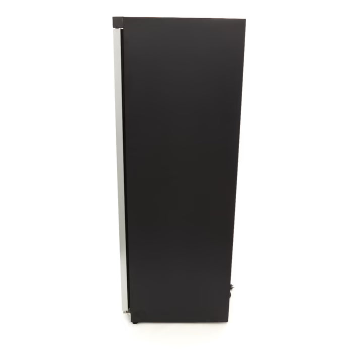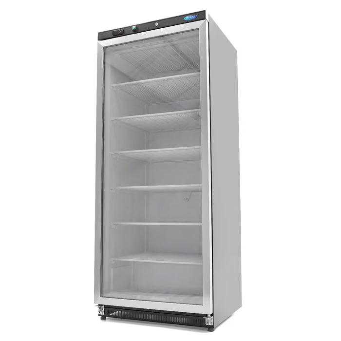 Denna professionella frys har en bruttokapacitet på 600 liter för förvaring av frysta produkter. Denna svarta frys passar sömlöst in i de flesta professionella kök. Den har sex fasta hyllor som ger tillräckligt med förvaringsutrymme. Hyllorna är utformade i ett rutmönster för att förbättra ventilationen. Glasdörren har ett lås som gör att du kan se de frysta produkterna utan att öppna kylskåpet.