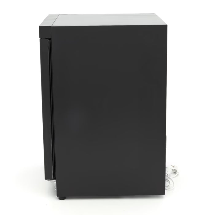 Kylskåpet har en användarvänlig elektronisk temperaturkontroll och digital display som gör det enkelt att läsa av och ställa in temperaturen. Produkterna kan kylas inom ett brett temperaturintervall. Kylskåpet har ett statiskt kylsystem med fläkt som håller innehållet jämnt kylt. Kylskåpet förhindrar också stora temperaturskillnader. Den når snabbt önskad temperatur och minimerar isbildning med en kylcykel var sjätte timme. Kylskåpet använder köldmediet R600a, som är CFC-fritt. Du kan justera dörrens öppningsriktning. Den levereras också med två justerbara främre fötter och två bakre hjul, vilket gör den lätt att flytta vid behov.