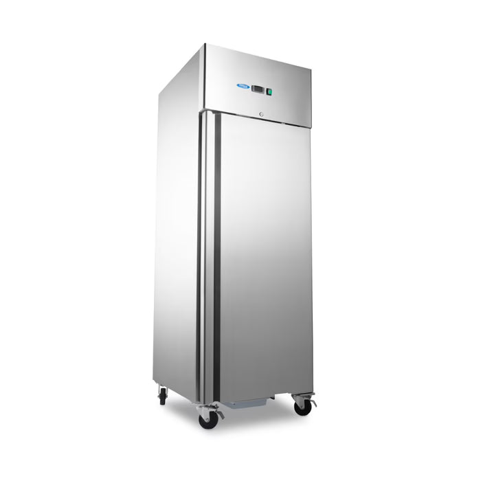Detta kylskåp på 600 liter är konstruerat för tillförlitlighet, effektivitet och användarvänlighet i professionell livsmedelsservice. Med en självstängande låsbar dörr, tjock isolering och en intuitiv digital kontrollpanel säkerställer detta kylskåp exakt temperaturhantering och optimala förvaringsförhållanden.