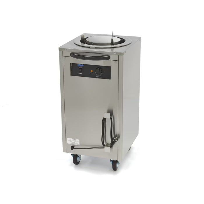 Temperaturen i den här tallriksvärmaren kan ställas in mellan 30 och 80⁰C så att den alltid har rätt temperatur för de rätter du serverar. Delarna är tillverkade av högkvalitativa material, så du kan känna dig säker på att den här tallriksvärmaren kommer att hålla i många år. Tallriksvärmaren har fyra hjul, inklusive bromsar, så att den kan flyttas runt efter behov. Den har också en varningslampa som indikerar när apparaten har rätt temperatur.