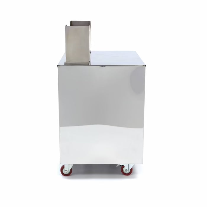 Den här vagnen har en hjulbas som är tillverkad helt i rostfritt stål och är idealisk för att kombinera med den automatiska juicemaskinen MAJ-25, MAJ-25SS eller apelsinjuicemaskinen MAJ-45 från Maxima. Apelsinpressarna kan vara ganska tunga och svåra att flytta fram och tillbaka till köket för rengöring. Med den här praktiska vagnen kan du flytta juicepressen till en annan plats närhelst den behövs, utan problem.